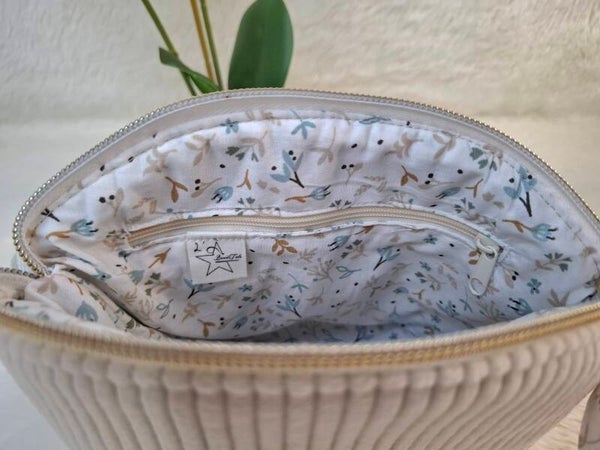 Velours écru et coton floral, avec poche zippé, pour y glisser tout votre maquillage: H 18 cm: L 21 cm: Ep 8 cm